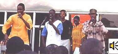 | 5-6 Hip-Hop Kassetten sind in Mali bislang herausgekommen. Produzenten, die Hip-Hop-Beats programmieren können, gibt es nochimmer kaum. Tata Pound eine der weiteren Bands im Land nahmen deshalb ihr Album in Dakar, Westafrikas Hip-Hop Hauptstadt auf. Sie rappen wie die meisten Bands in Bamana und haben eine deutliche Message. | |